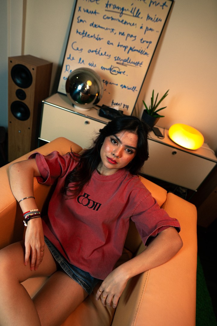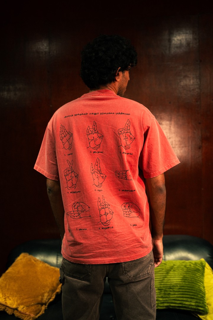 Crafted from high-GSM premium cotton, the Mudra Tee offers a balanced structure yet boxy fit and soft drape in a muted washed-pink finish. Subtle 3D embroidery of the Kanaa logo marks the front, while the back artwork draws from Tandava and Lasya, a visual expression of balance between strength and serenity with the classic artform of Bharatam.